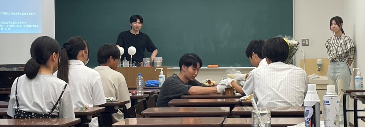 オープンキャンパスが行われました。化学科のラボツアーに構造物理化学研究室も参加し,「マイナス196℃の世界」と題した演示実験を行いました。ご来場いただいた皆さま,ありがとうござました!