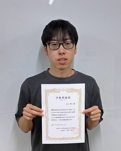 D2・小山君が,本学先進理工系科学研究科の学術奨励賞を受賞しました。おめでとうございます!